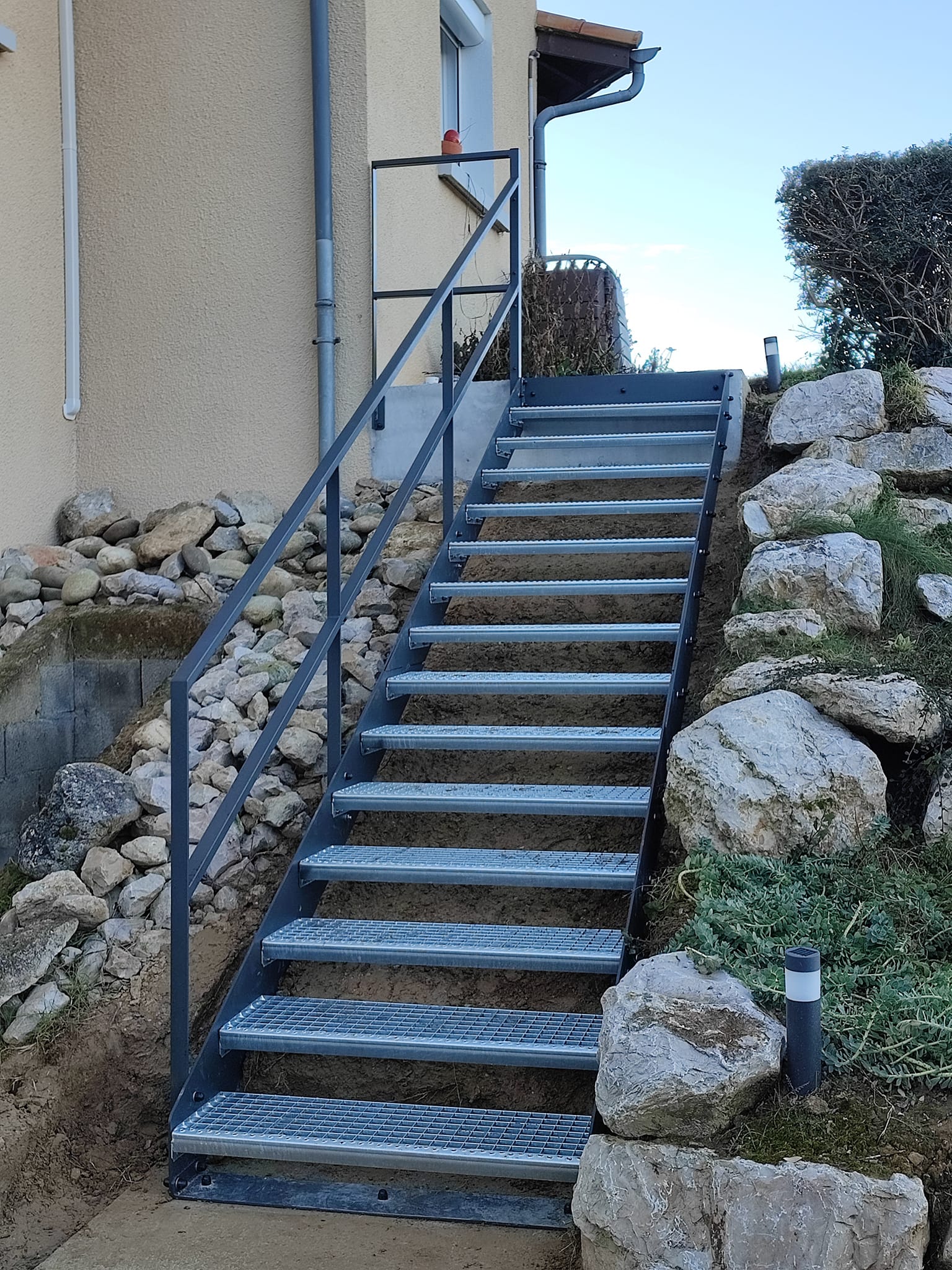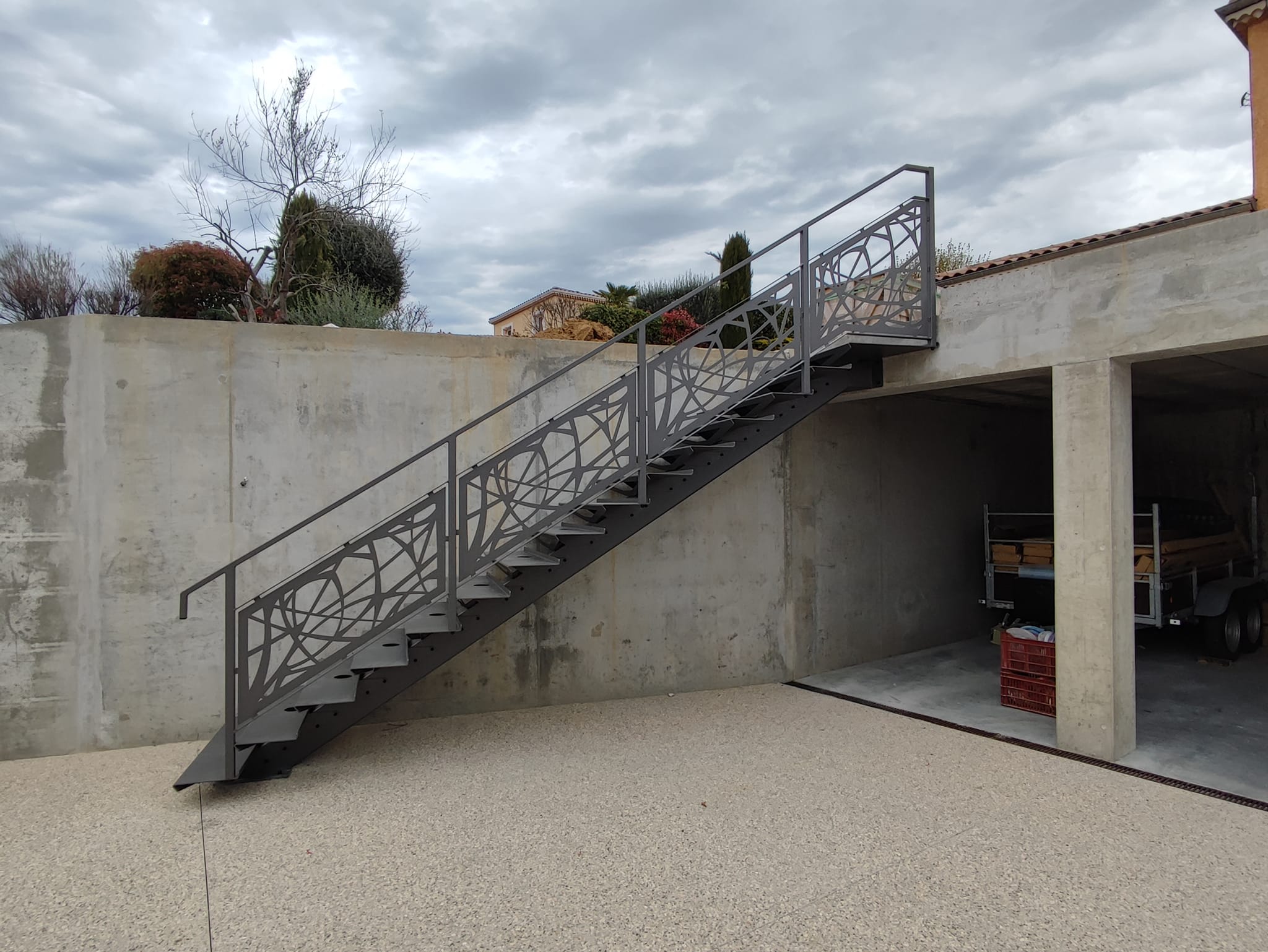 Verrières, escaliers acier, trappes de cave, structures métalliques — si ça se soude et ça se fabrique, nous le faisons. Notre atelier de Guilherand-Granges conçoit et réalise toutes vos créations en métal sur mesure, du plan 3D jusqu’à la pose.